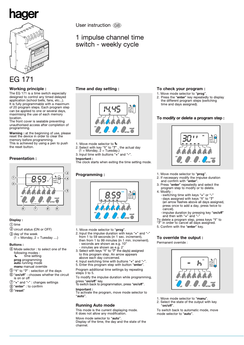 Présentation de la notice : Manuel utilisateur Commutateur Hager EG 171
